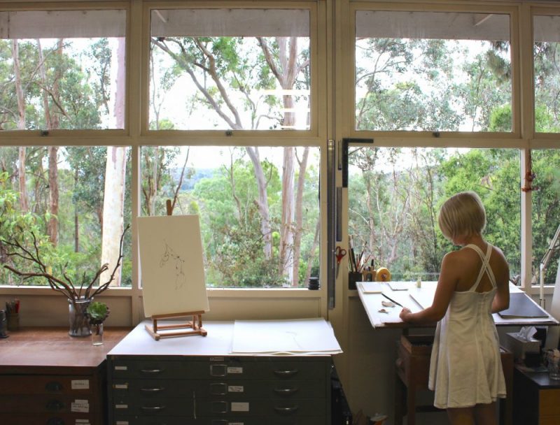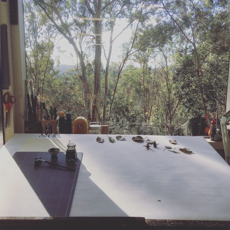 I am so lucky to be working out of my grandparents’ beautiful house in Warrandyte. My studio overlooks a stunning view of gum trees and native wildlife.
