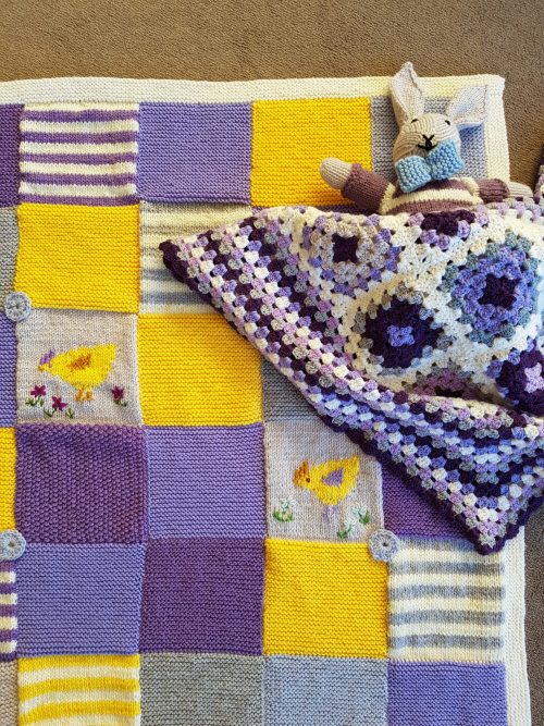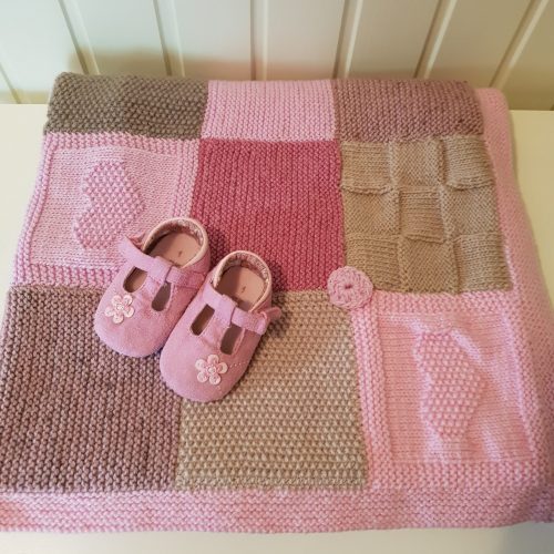 When the grandbabies started arriving I wanted to make something special for them, and something their parents would treasure. I started with knitted outfits and moved on to blankets for cots, prams and just snuggling – a different design for each baby.