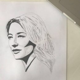 At first, the drawings were rusty and unexciting. But over time with practice and experimentation, I landed on a graphic style that suits the medium and the subject matter. I drew Ita Buttrose about 180 times and Germaine Greer about 120 times to get to this point. After some advice from a friend, to focus on the person’s beauty, strength and character so their radiance shines through the image, I felt ready to then prototype.