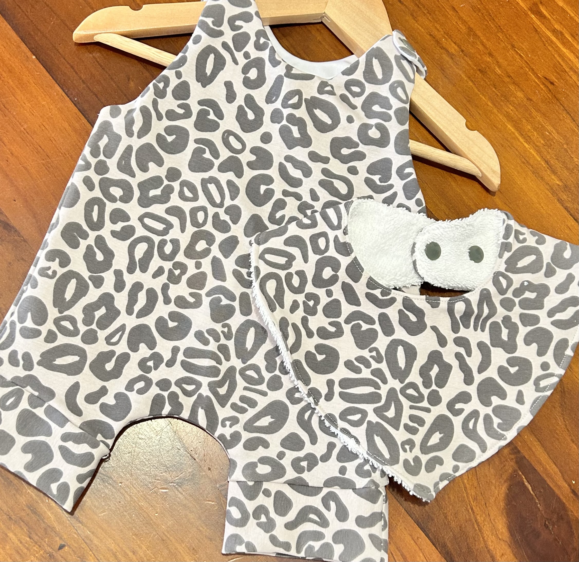 Cute handmade baby overalls and bib set to fit size 0-3 months or 3-6 months.
