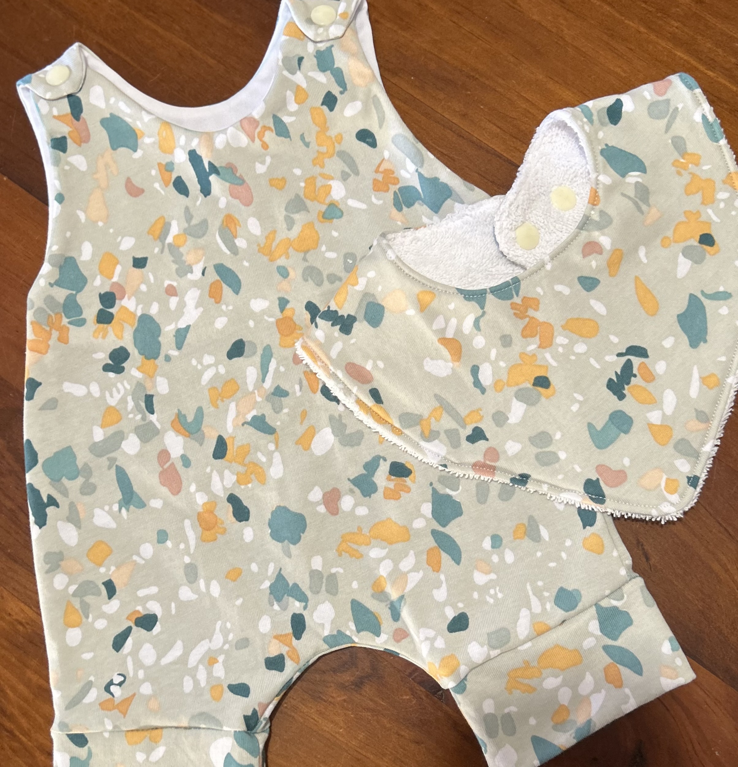 - Cute handmade baby overalls and bib set to fit size 0-3 months or 3-6 months