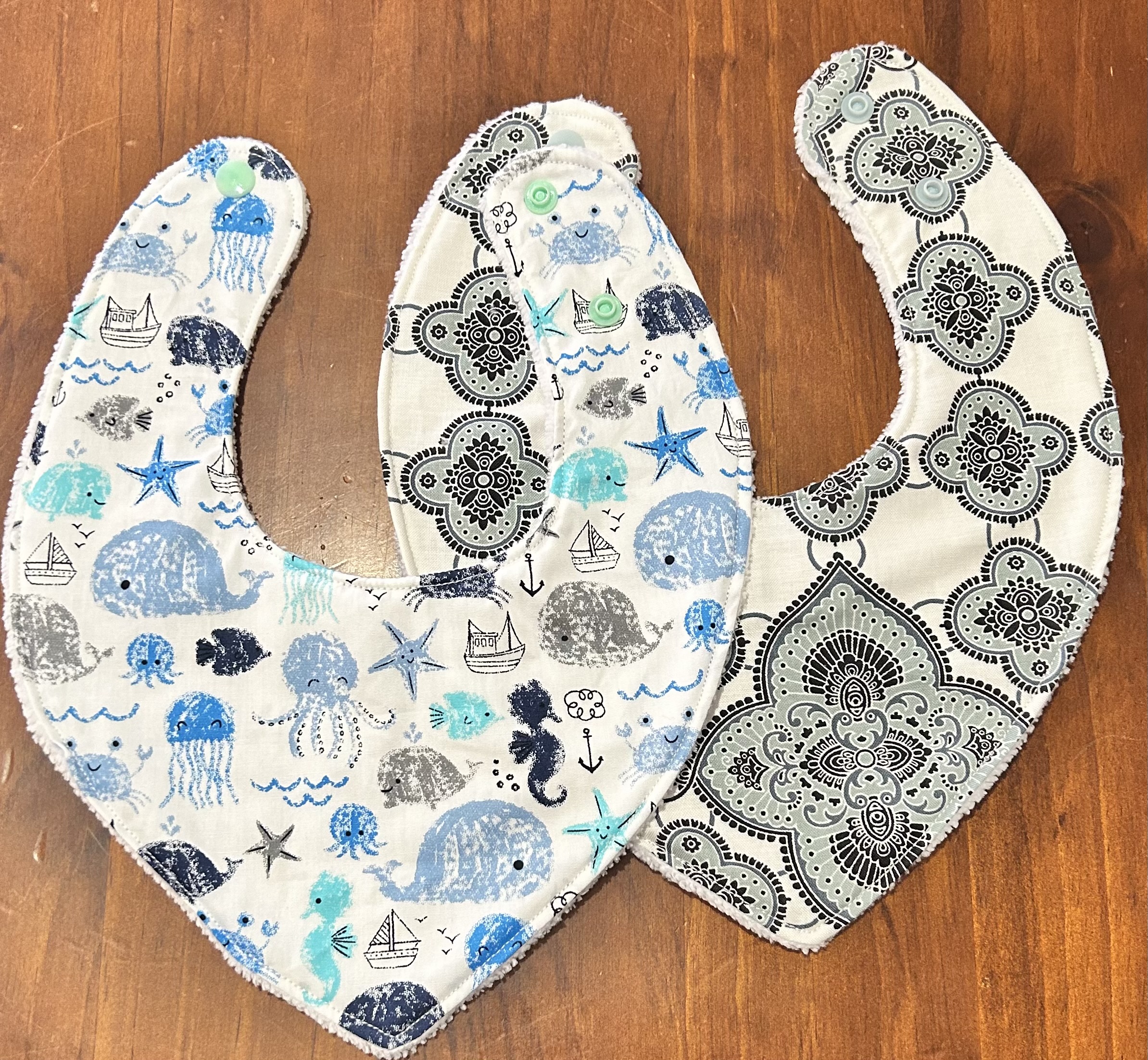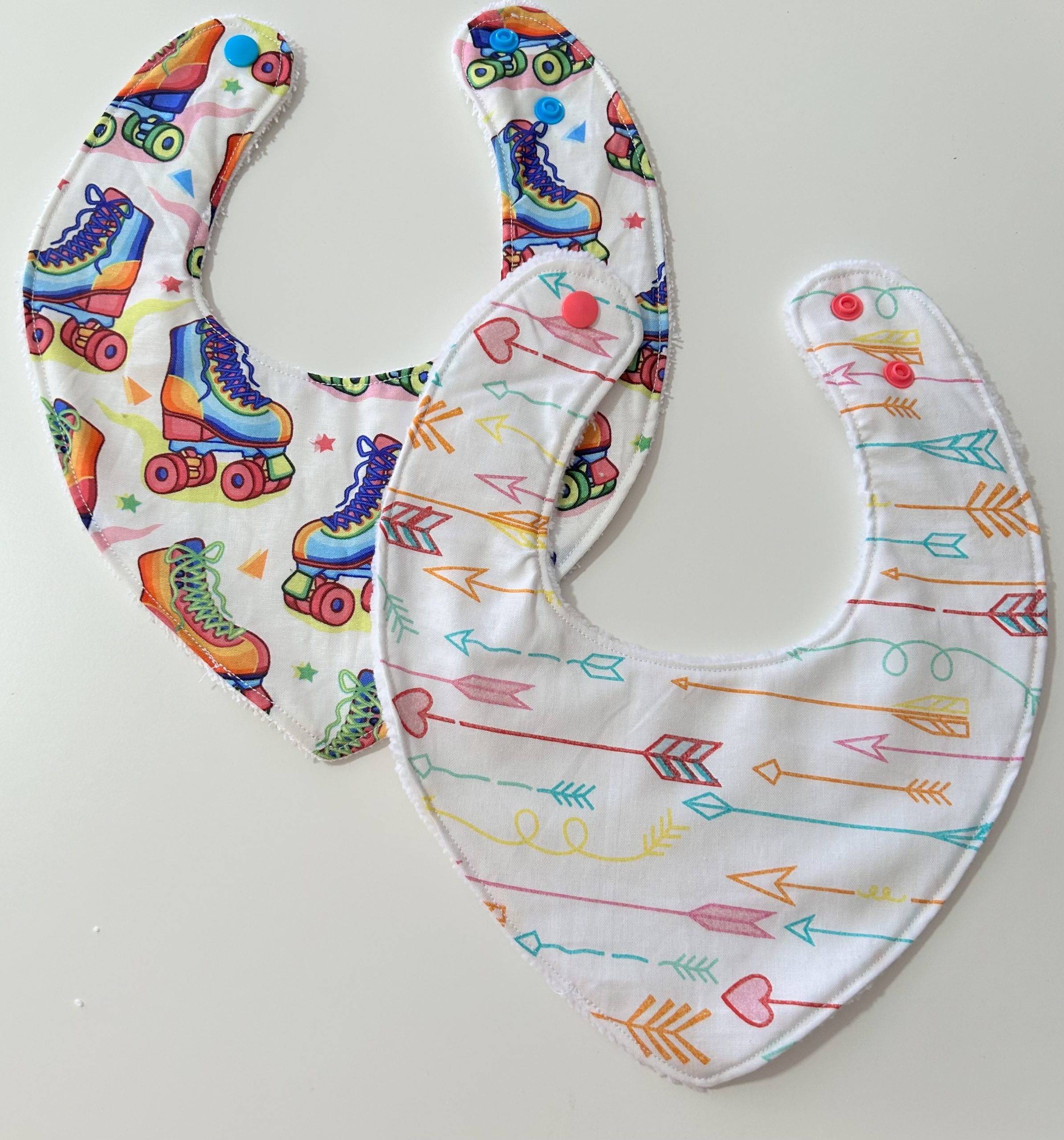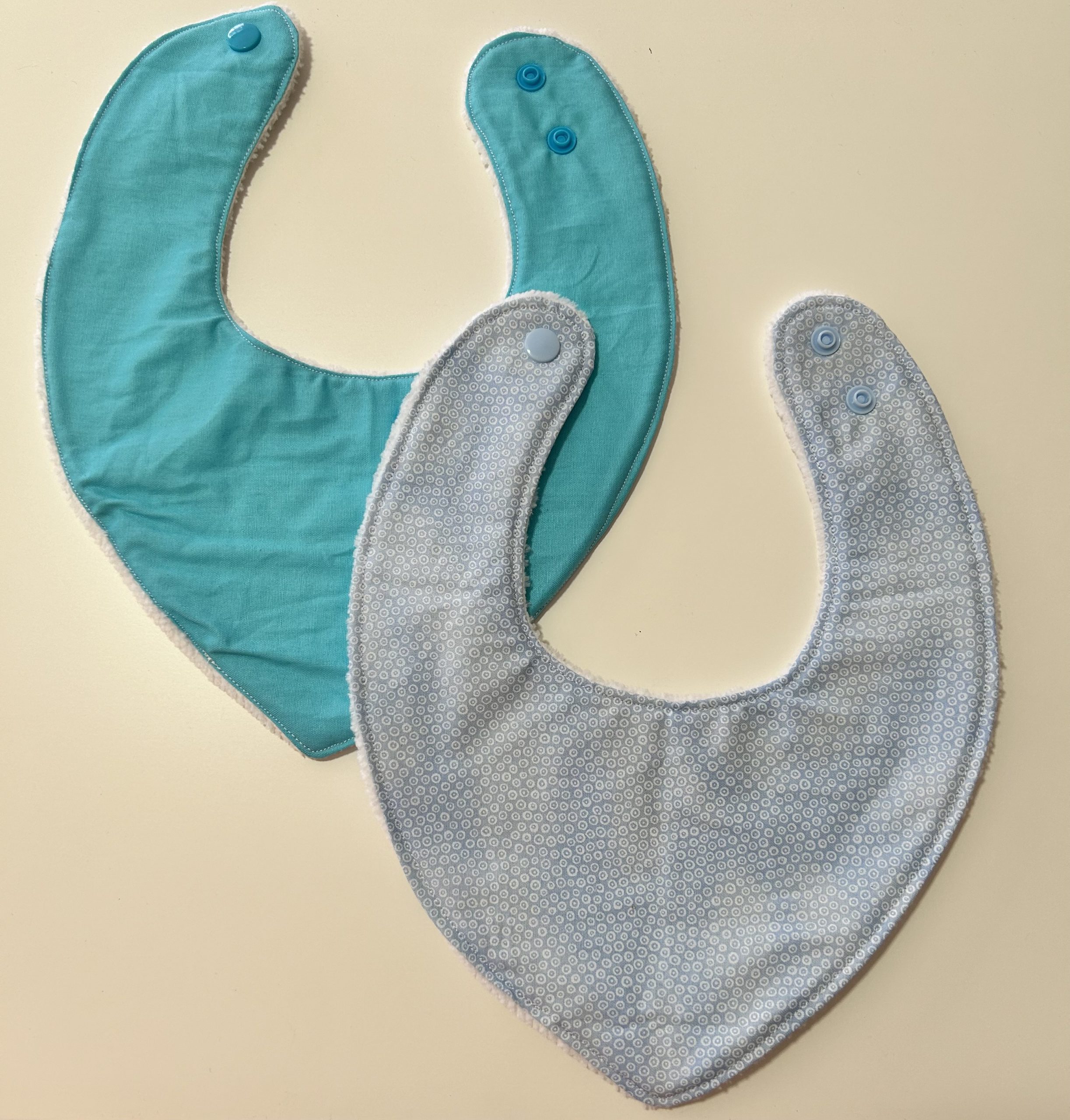 Each bib has two adjustable snap buttons making them sturdy and easy to put on and off.