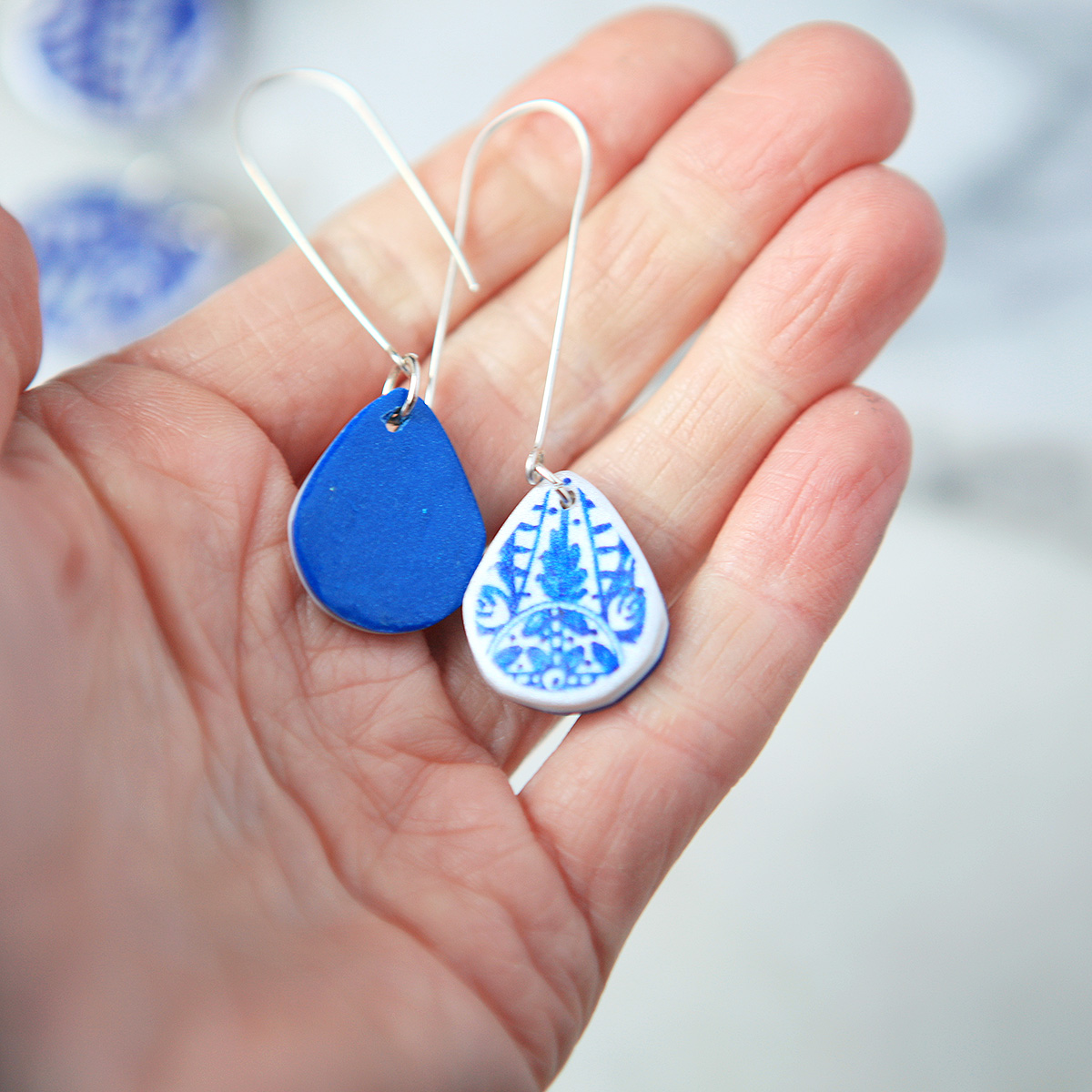 Size: 2cm teardrop polyresin art tile with 4cm hook.
