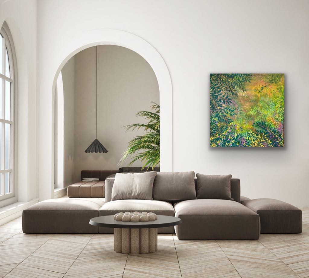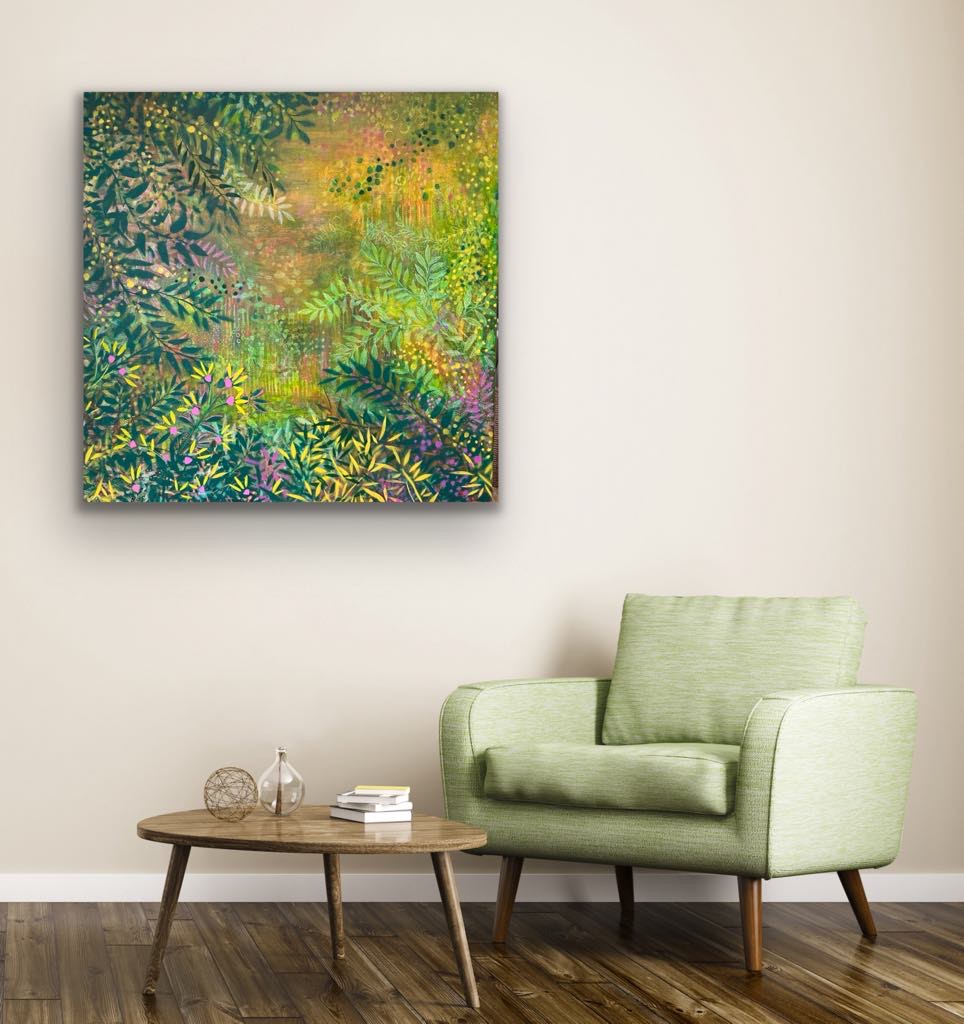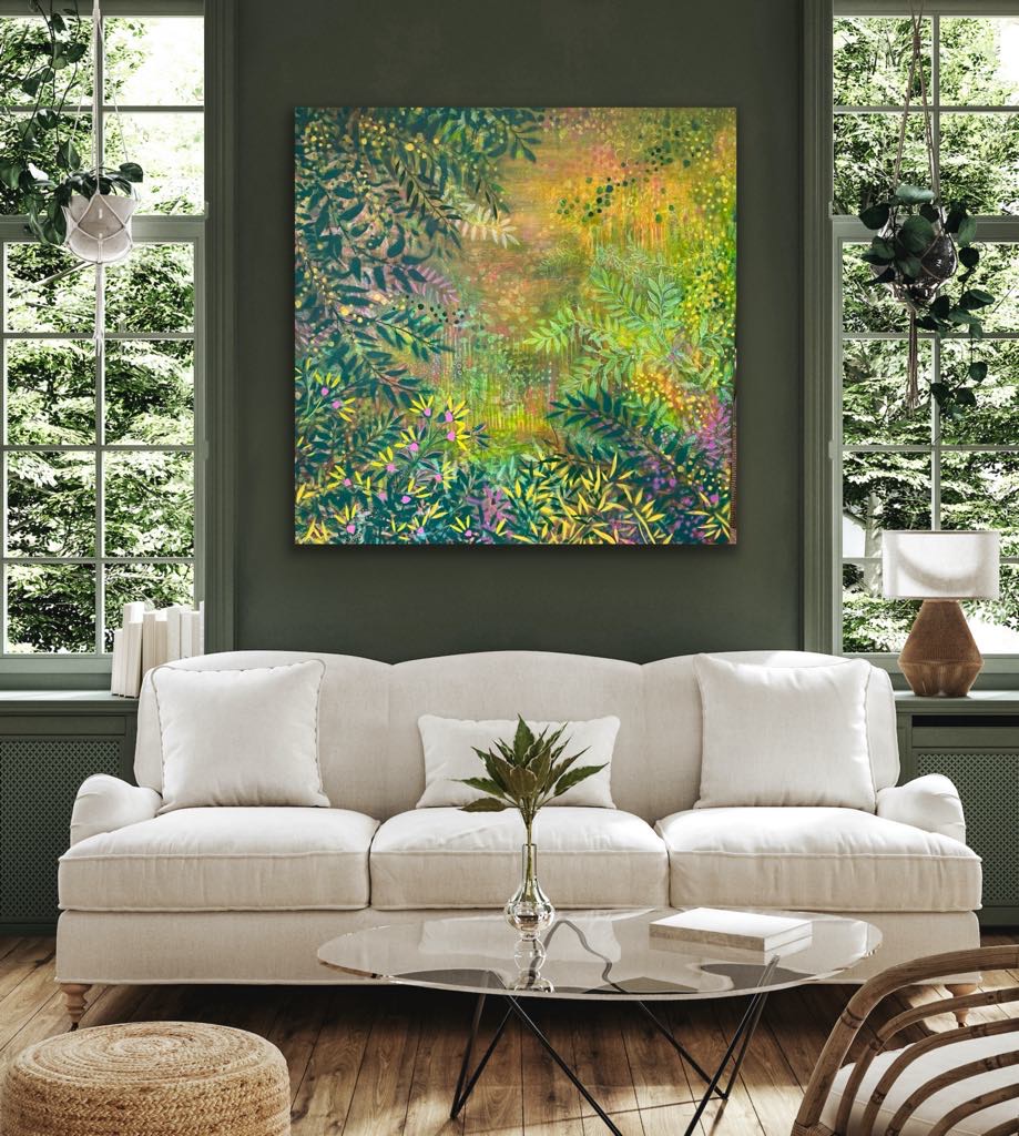 Enchanted Gully was slowly developed over many hours of intuitive painting, each day, over 5 days.