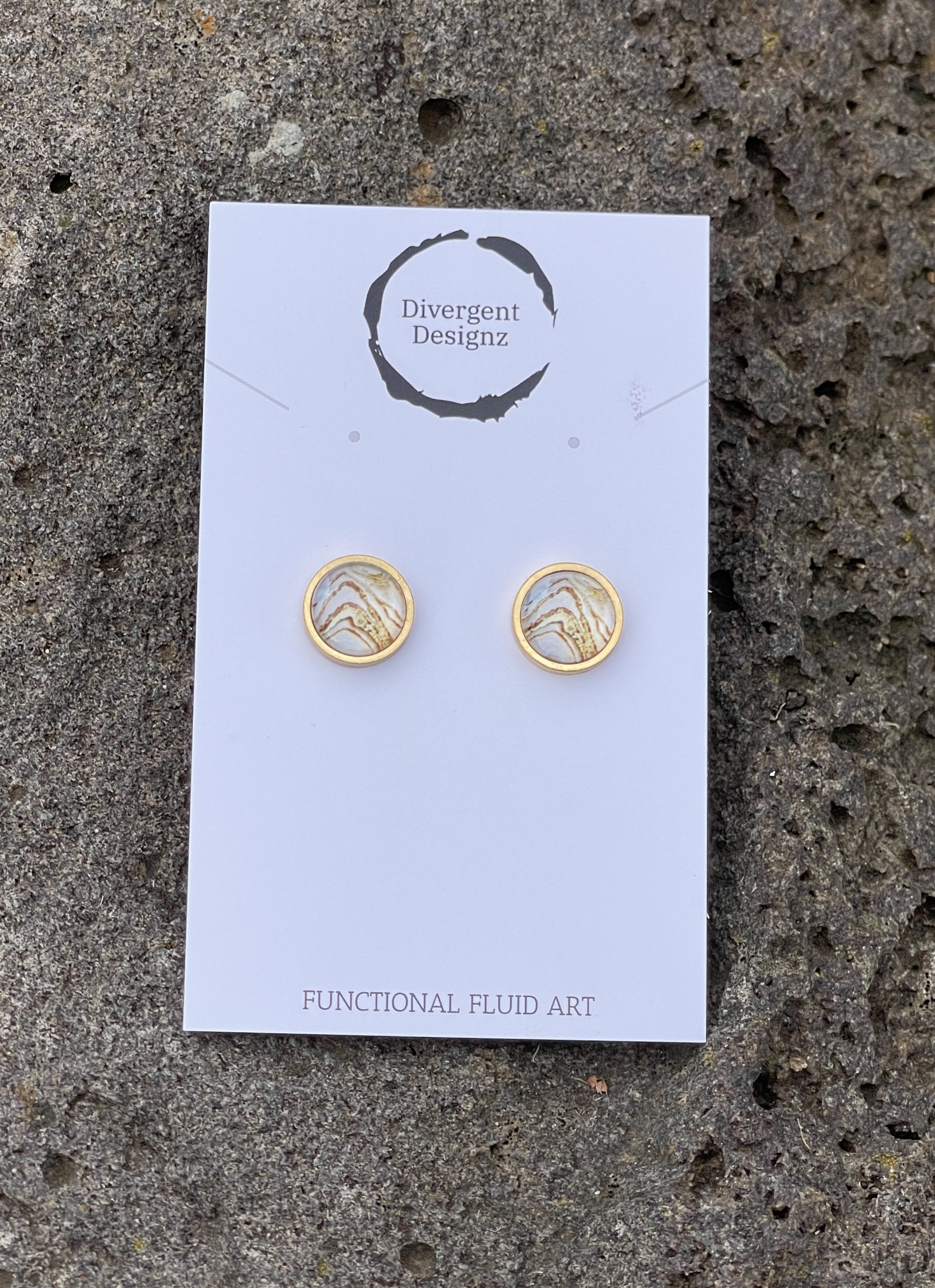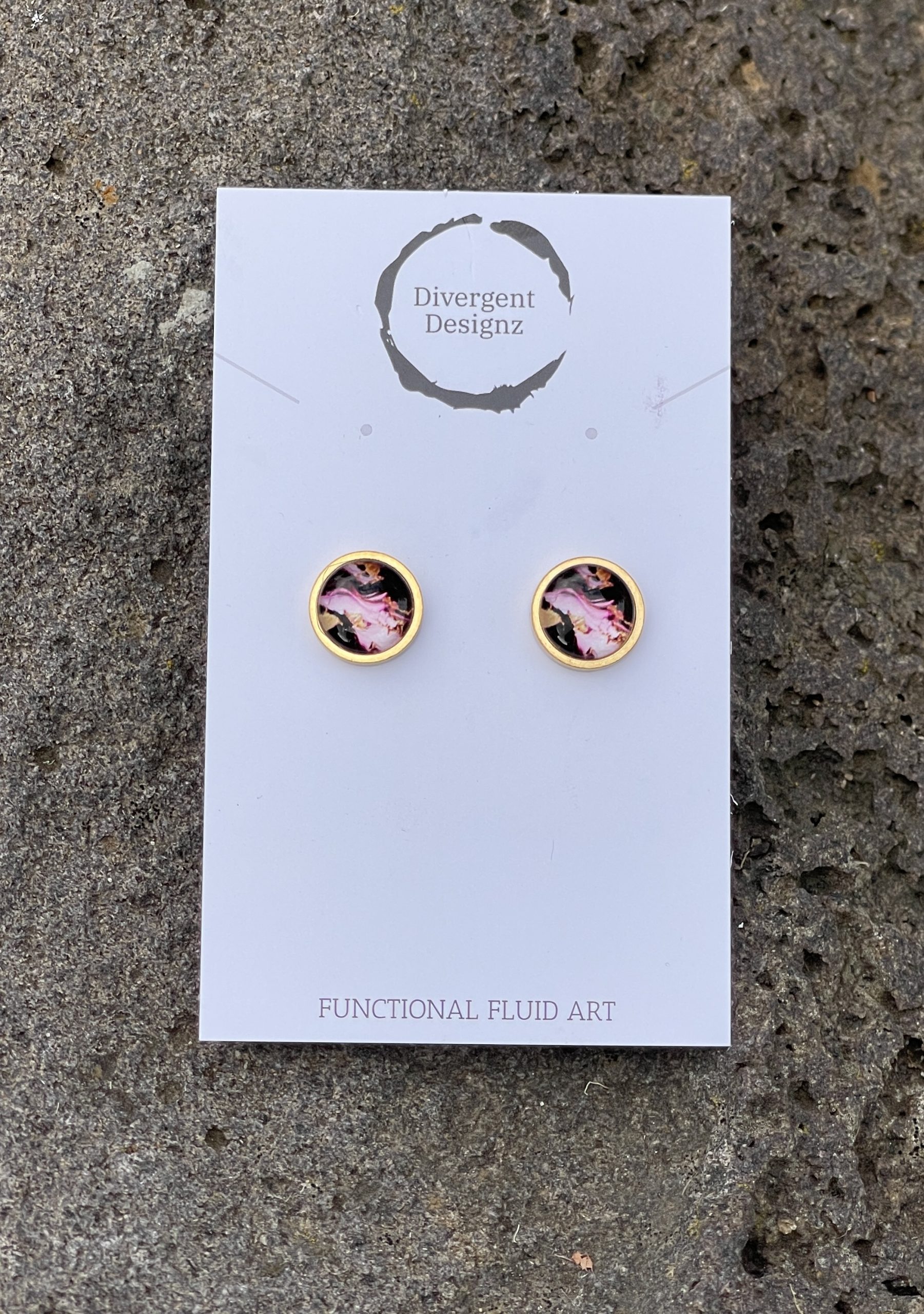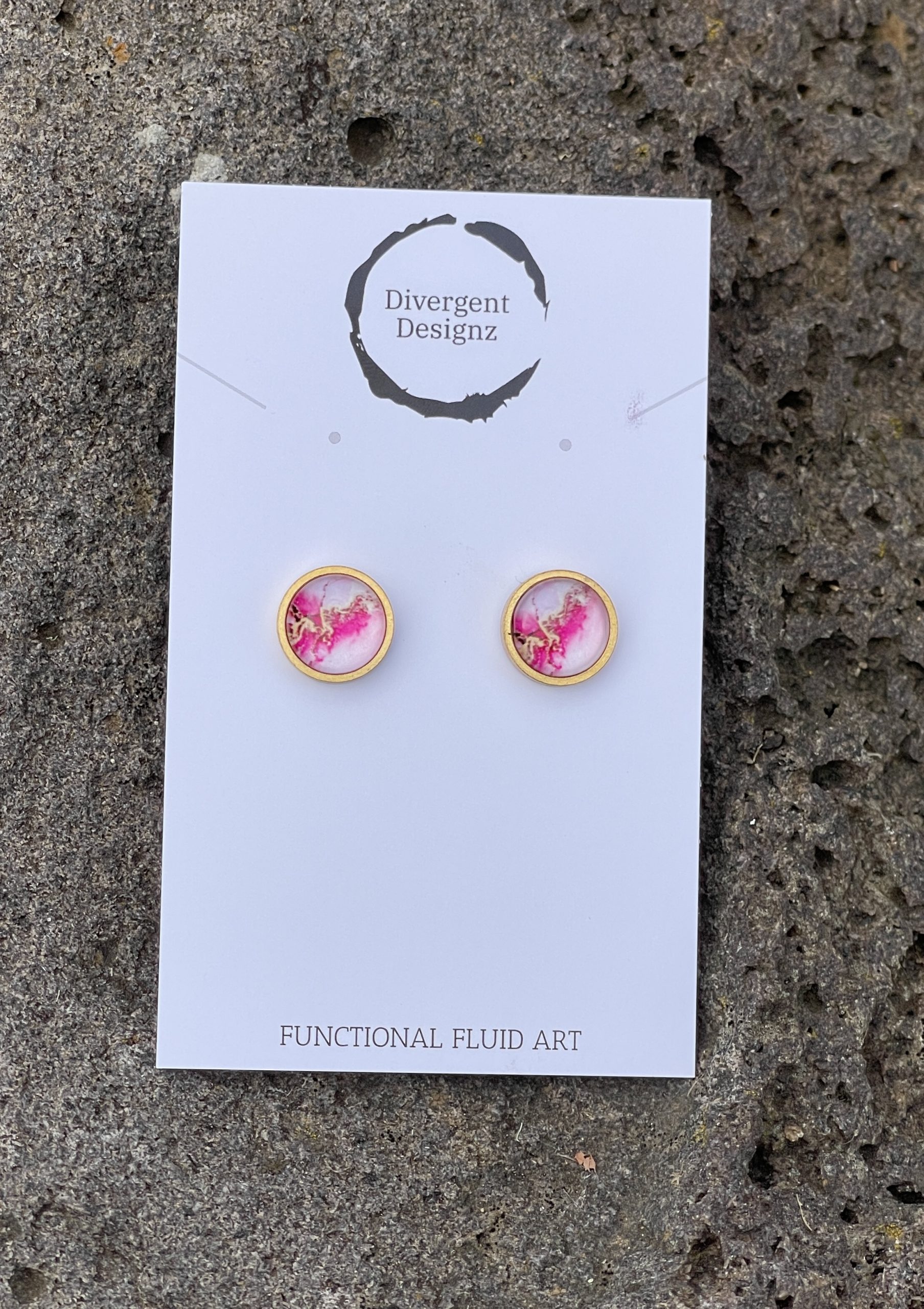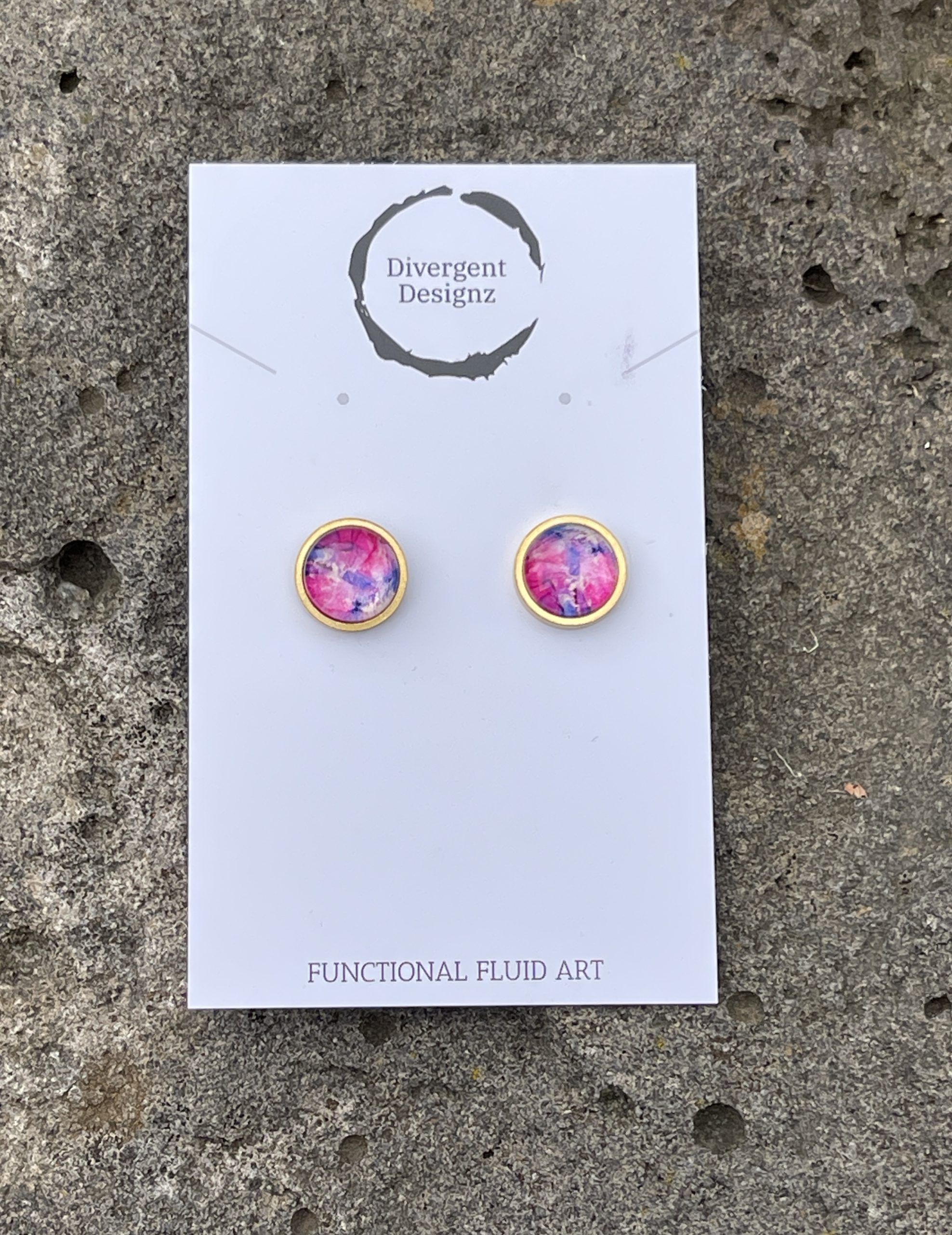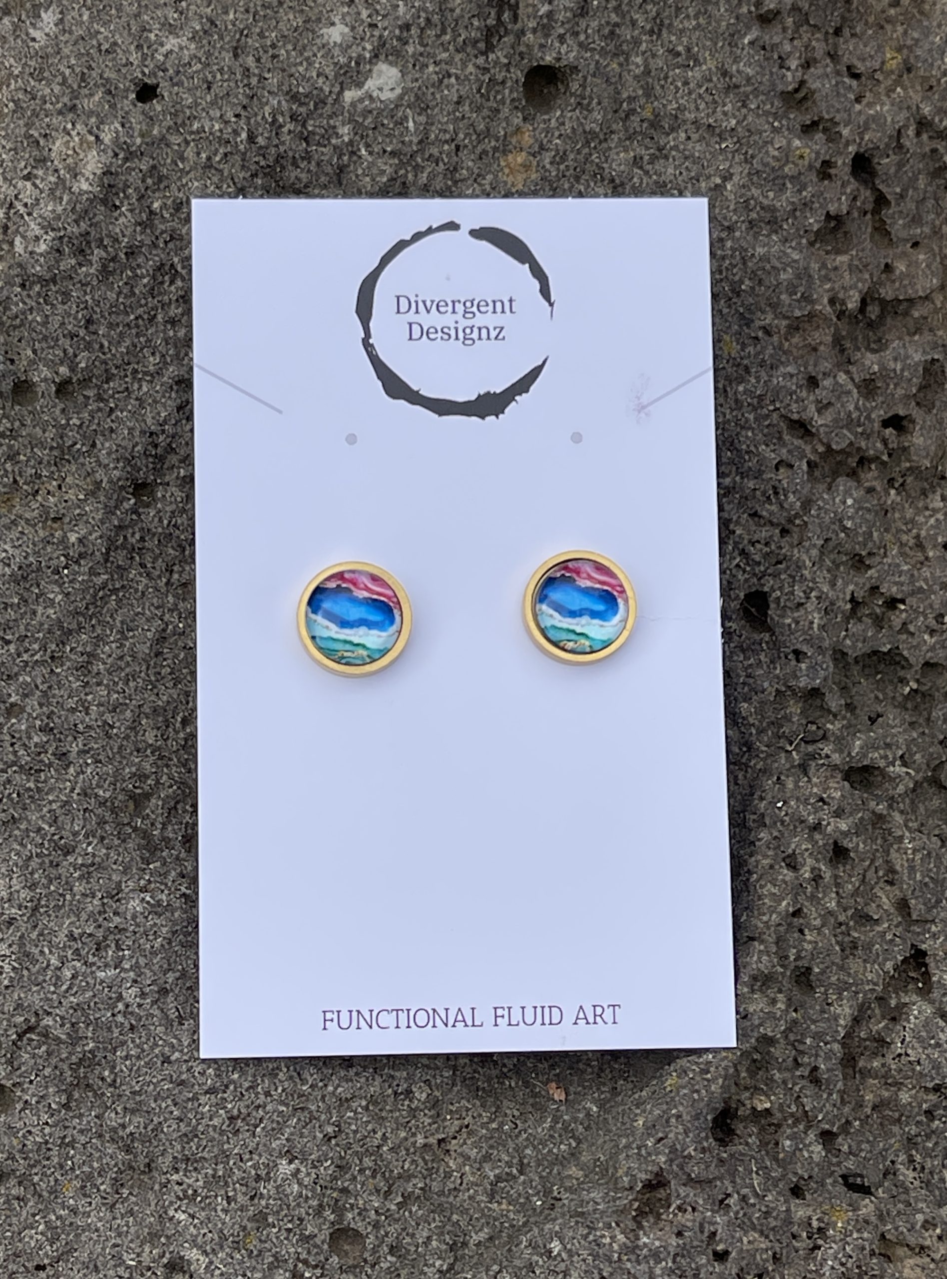 Beautiful handmade fluid art studs set in never fade gold toned stainless steel. Bright and vibrant, perfect for gifting. Gorgeous bright shades.