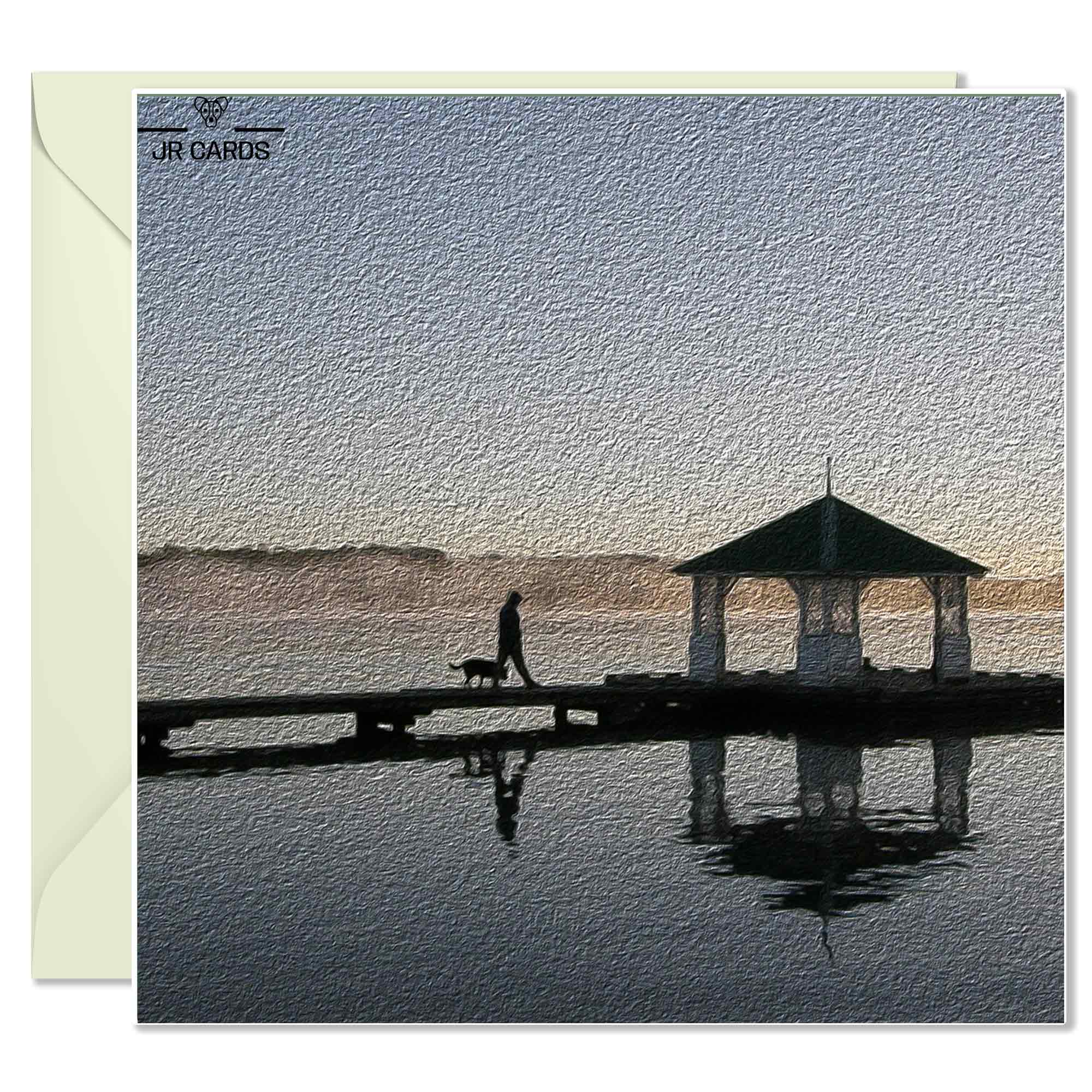 Greeting Card – Man and Dog.  Sharing the morning walk.