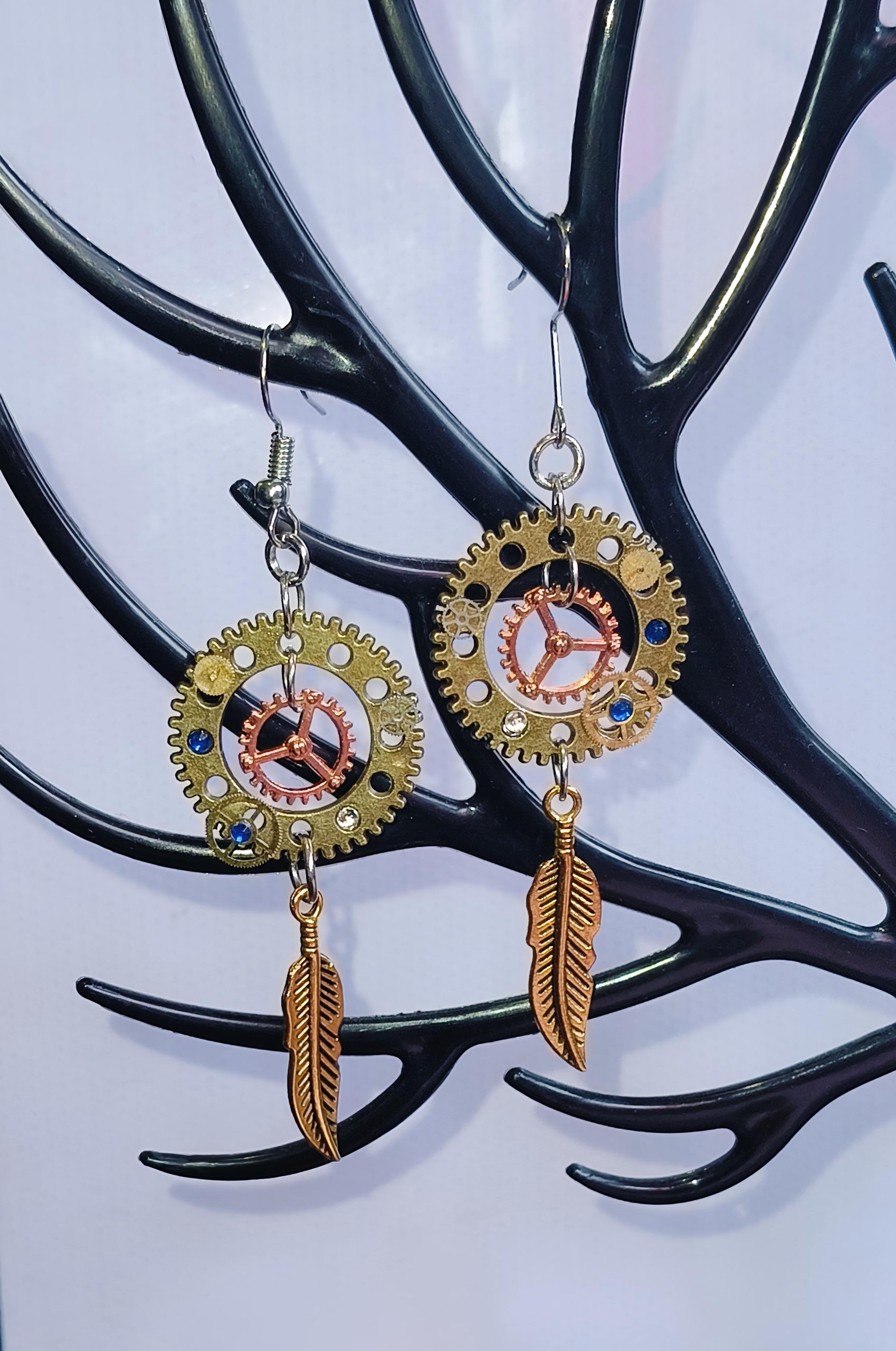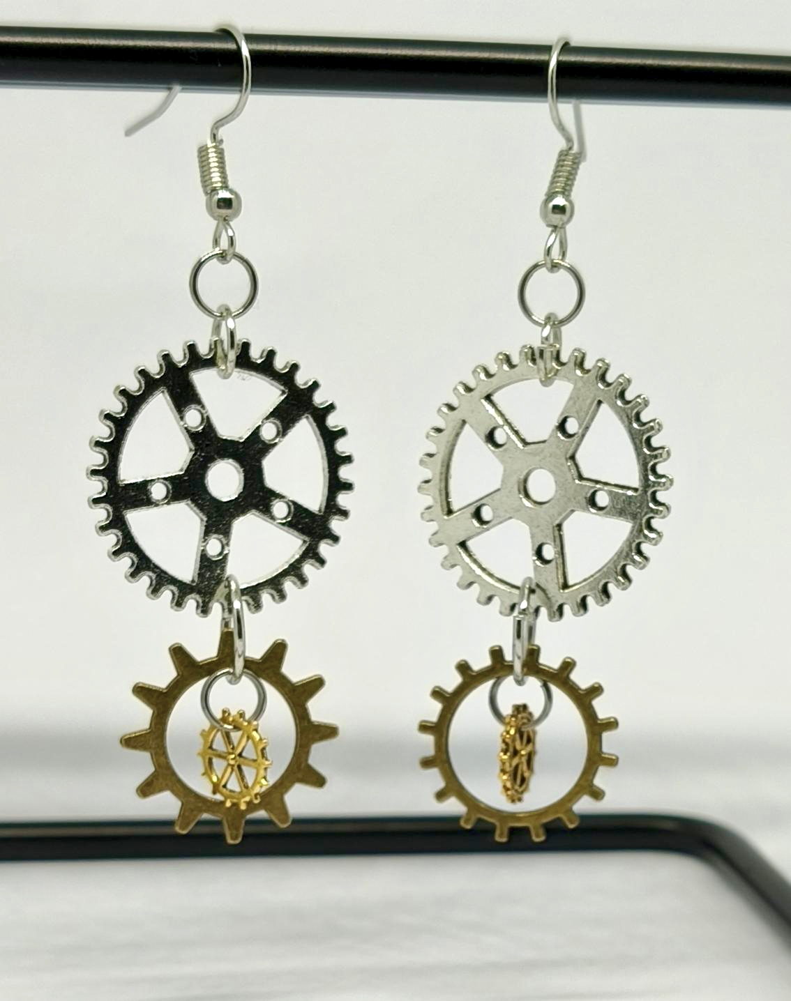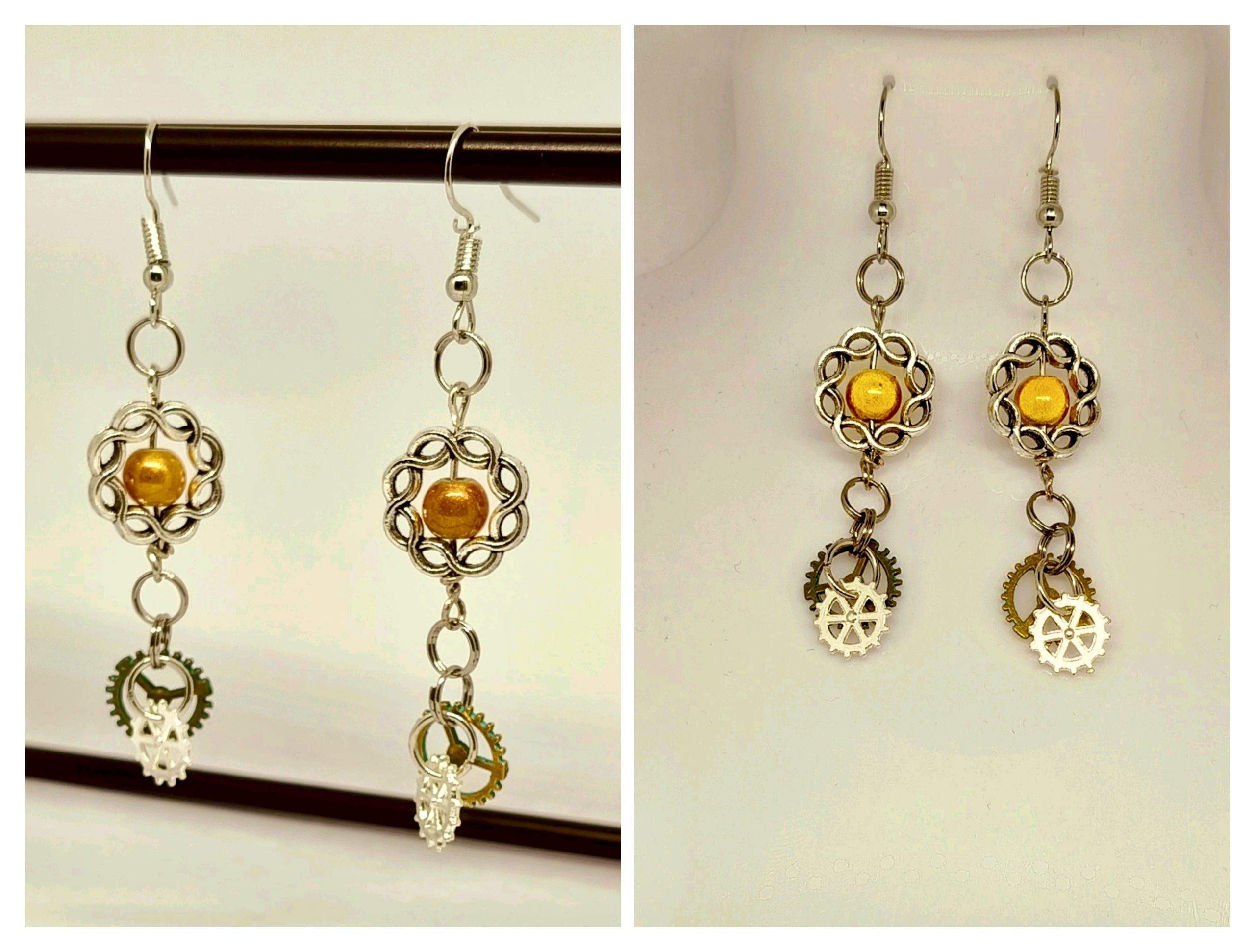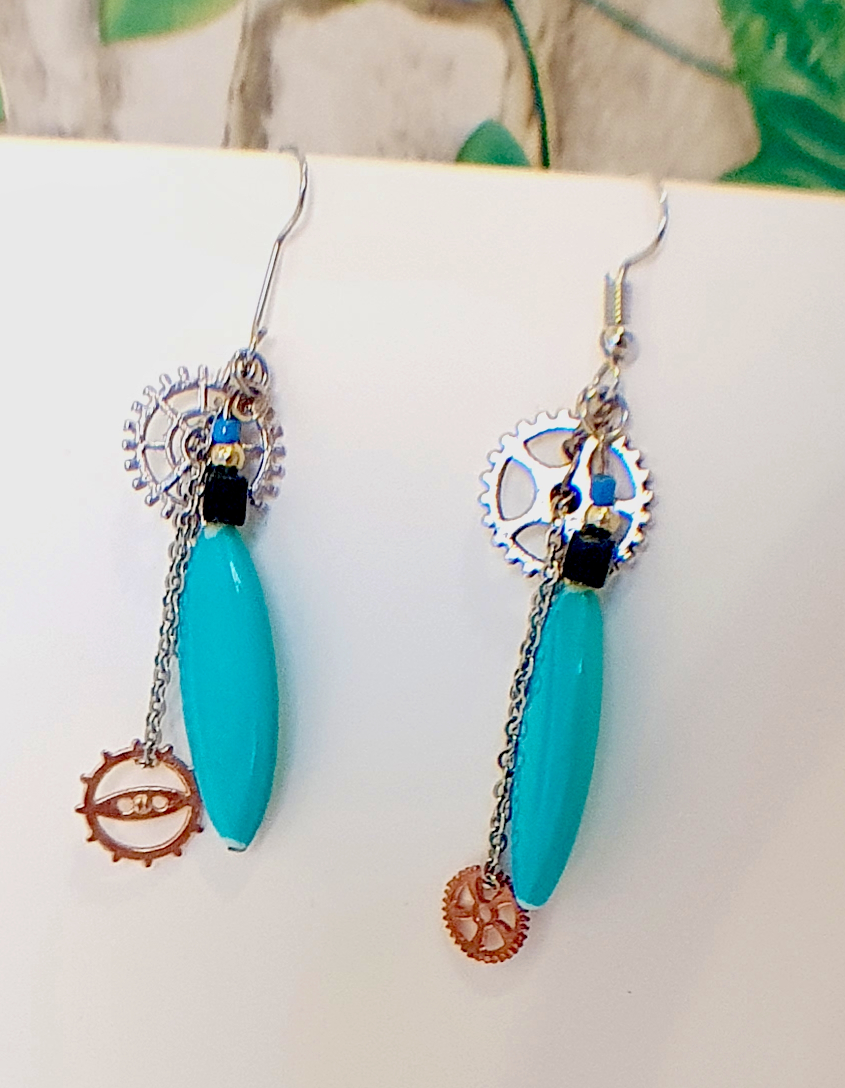 | Cogs and bead earrings | earrings with beads to add a flair of colour |