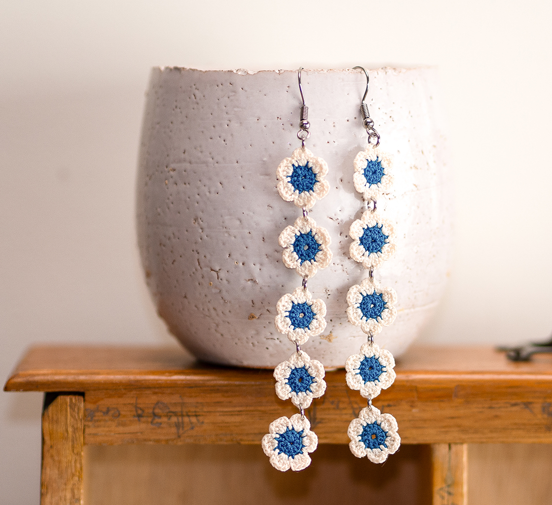 Long chain of daisies micro-crochet earrings – 5 daisies